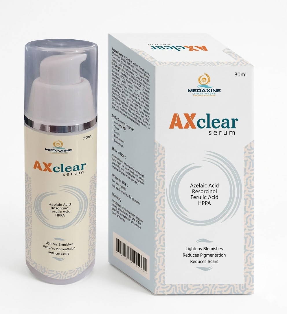 AXclear Serum is a skincare serum formulated to improve skin clarity, brightness, and overall texture. It helps reduce the appearance of dark spots, pigmentation, and uneven skin tone, giving the skin a smoother and more radiant look. The serum contains active ingredients that support skin hydration, antioxidant protection, and collagen production, helping the skin appear healthier and more youthful.Its lightweight formula absorbs quickly into the skin without leaving a greasy feel, making it suitable for daily skincare routines. Regular use of the serum may help improve skin tone, reduce dullness, and enhance natural glow, while protecting the skin from environmental damage.