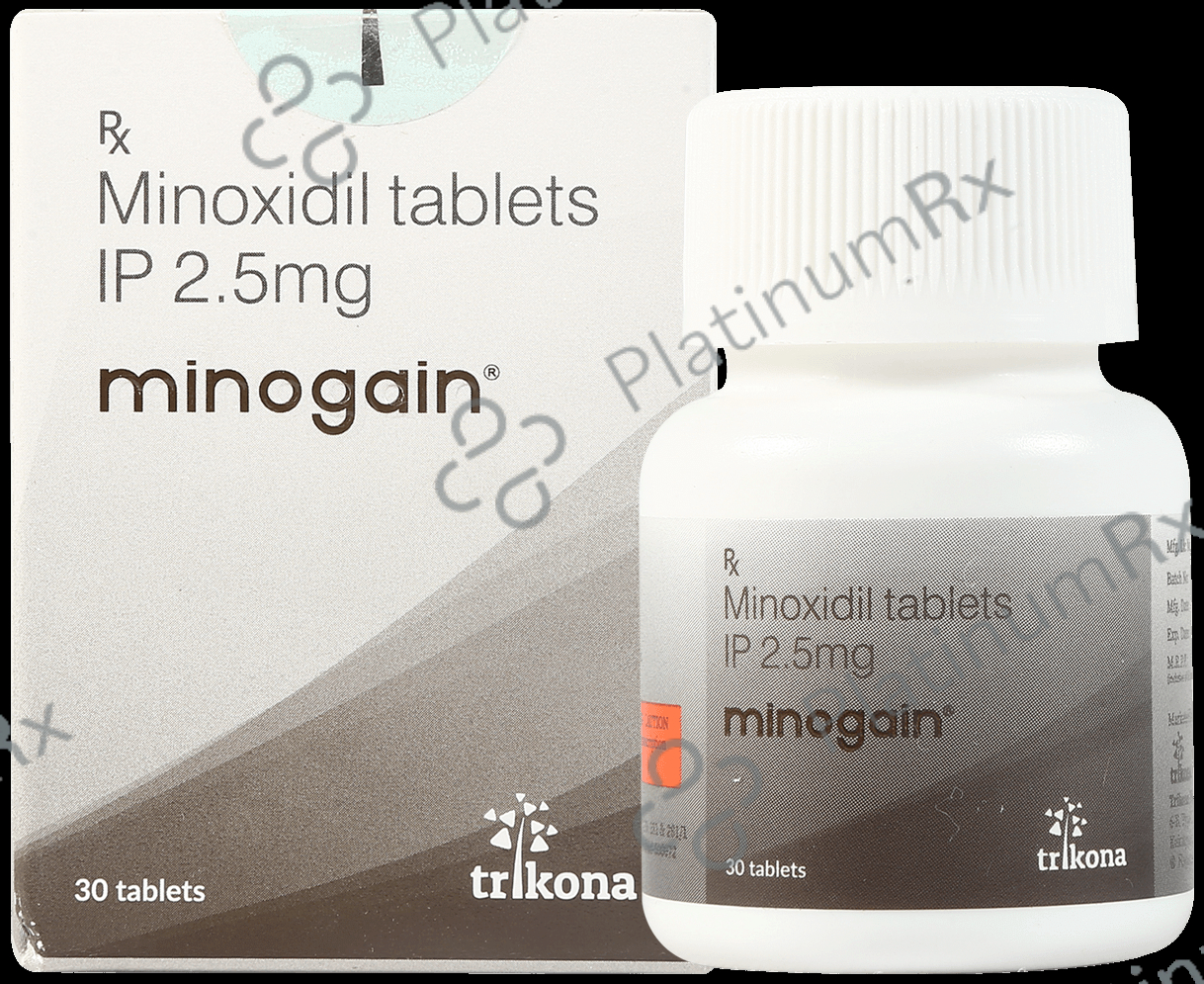 Minogain 2.5mg is a specialized oral medication formulated to support hair growth and reduce hair thinning in individuals experiencing androgenetic alopecia (pattern hair loss). Its active ingredient, minoxidil, works by stimulating hair follicles, improving blood flow to the scalp, and prolonging the hair growth cycle. This tablet is ideal for adults seeking an effective solution for hair thinning or early-stage hair loss.a clinically proven active ingredient that stimulates dormant hair follicles, enhances scalp circulation, and strengthens hair from the root. Suitable for both men and women experiencing androgenetic alopecia or pattern baldness, Minogain helps improve hair density and reduce shedding over time.