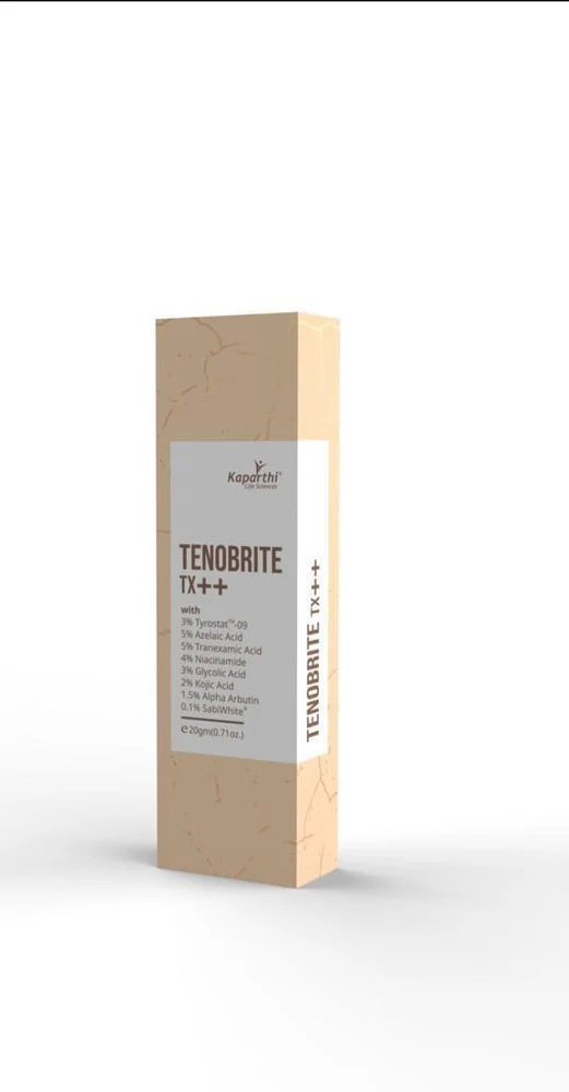 Tenobright TX++ Cream is an advanced skin-brightening and depigmenting formulation designed to reduce pigmentation, dark spots, melasma, and uneven skin tone. It works by helping to control excess melanin production in the skin, which is the main cause of dark patches and discoloration. The cream supports a clearer, brighter, and more even complexion with regular use.